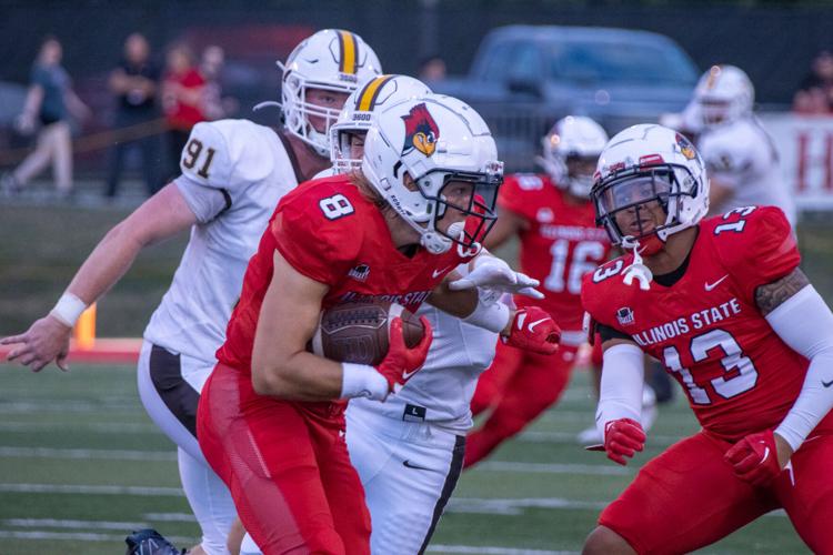Illinois State receiver Brock Annexstad (8), brother of quarterback Zack Annexstad, has eight catches for 125 yards through four games. (Photo by VidetteOnline.com)