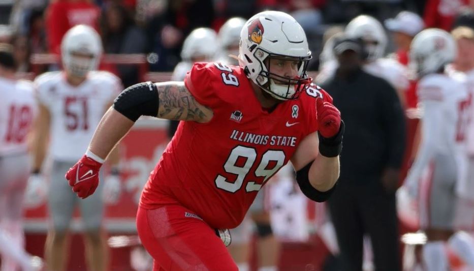 Senior defensive tackle Noah Hickcox and the Redbirds host Western Illinois in ISU’s season finale Saturday. (Photo by GoRedbirds.com)