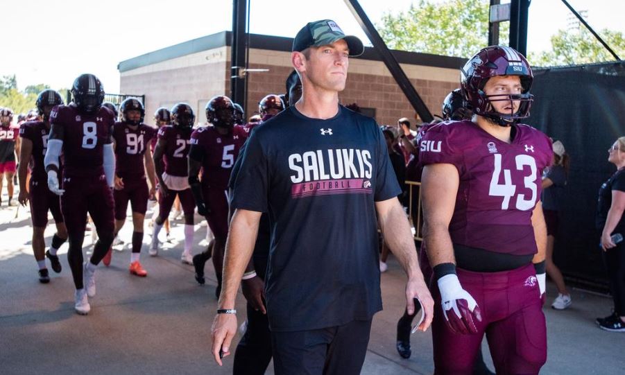 Ranked No. 24 last week, head coach Nick Hill’s Salukis should move up in the FCS polls this week following a road victory at FBS Northern Illinois. (Photo by SIUSalukis.com)