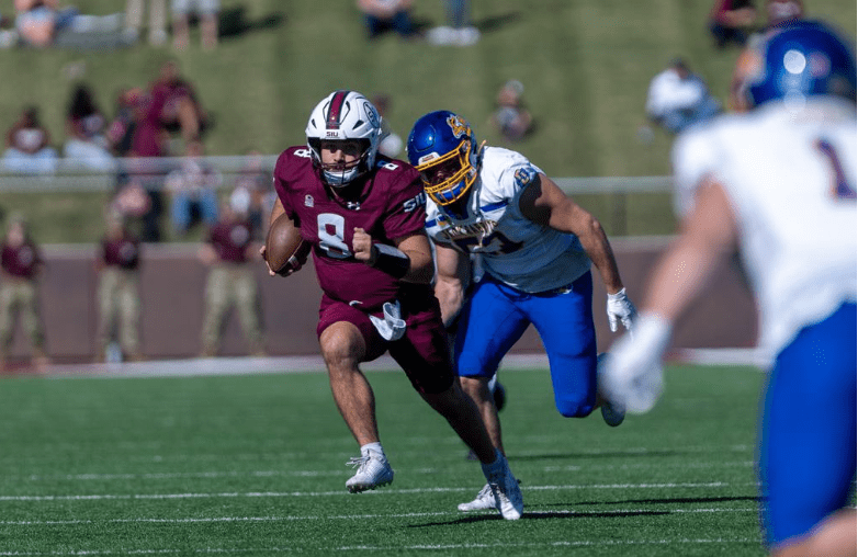 Quarterback Nic Baker (8) was SIU’s leading rusher with 31 net yards on 15 carries in the Salukis’ 17-10 home loss to No. 1 South Dakota State. (Photo by SIUSalukis.com)