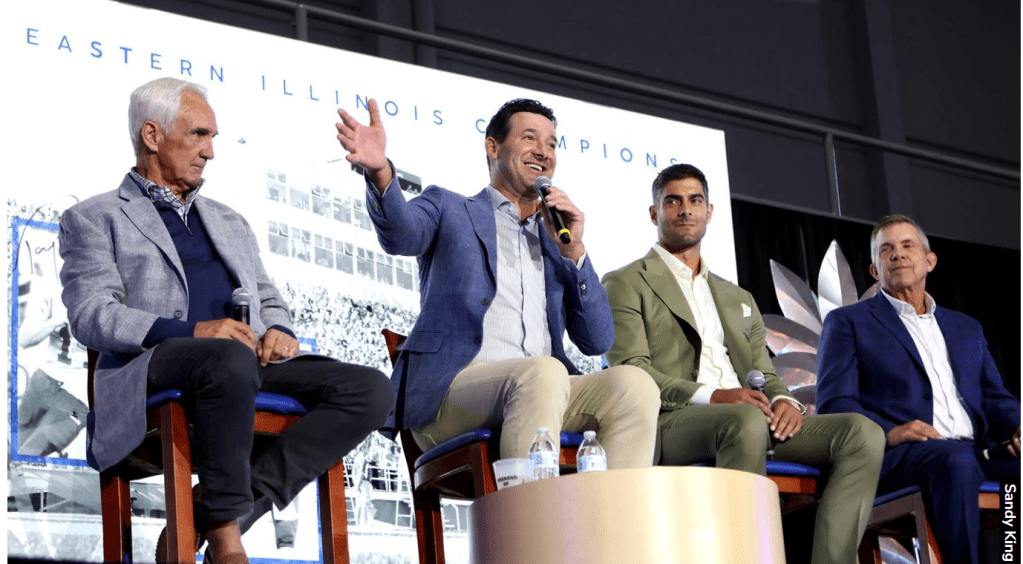 Shanahan, Payton and Garoppolo all played quarterback at Eastern Illinois. So did Tony Romo, who joined the others on stage for the June 1 fundraiser.