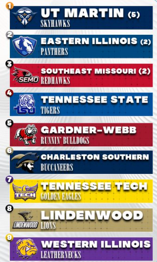 After an eight-win season that resulted in a near-miss at a playoff appearance, head coach Chris Wilkerson’s Panthers were picked to finish second behind UT Martin in the league’s preseason poll, which was revealed Wednesday before the league’s virtual media day.