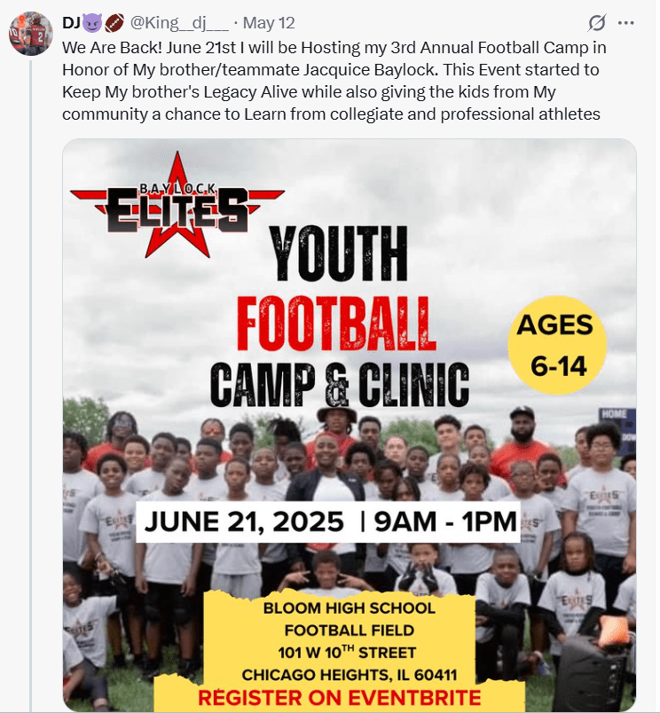 “D.J. talks about that a lot,” Hill said. “Whenever people talk about what they want to do (in the future), he always mentions going back to his high school and one day being the head coach. He always talks about wanting to help out kids like him on the south side of Chicago.”