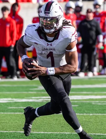 Southern Illinois quarterback D.J. Williams’ return to the Salukis for 2026 has created plenty of joy, especially among head coach Nick Hill’s family. (Photo by Barry Bottino, PrairieStatePigskin.com)