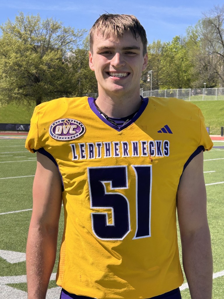 After Saturday’s spring game, Western Illinois head coach Joe Davis announced inside linebacker Nick Reinickie (51) as one of the team captains. (Photo by GoLeathernecks.com)